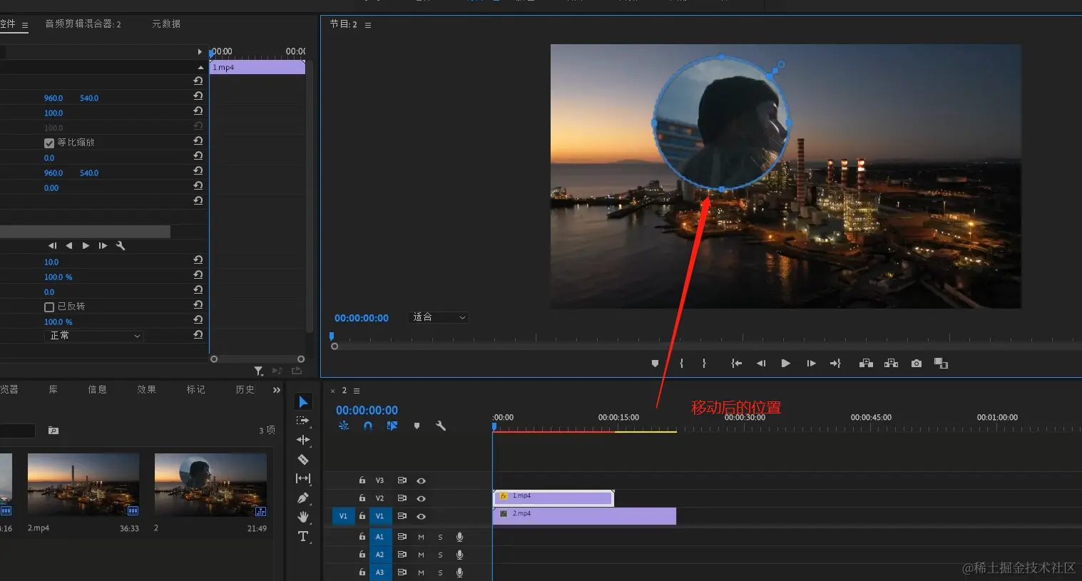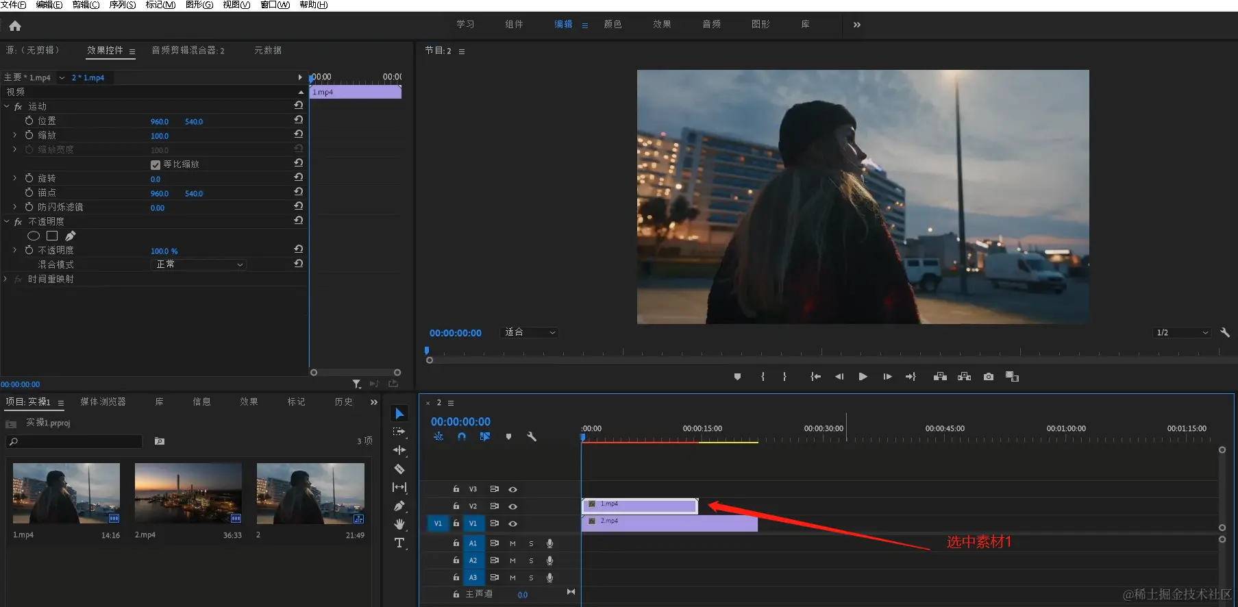 - 选中视频1素材。