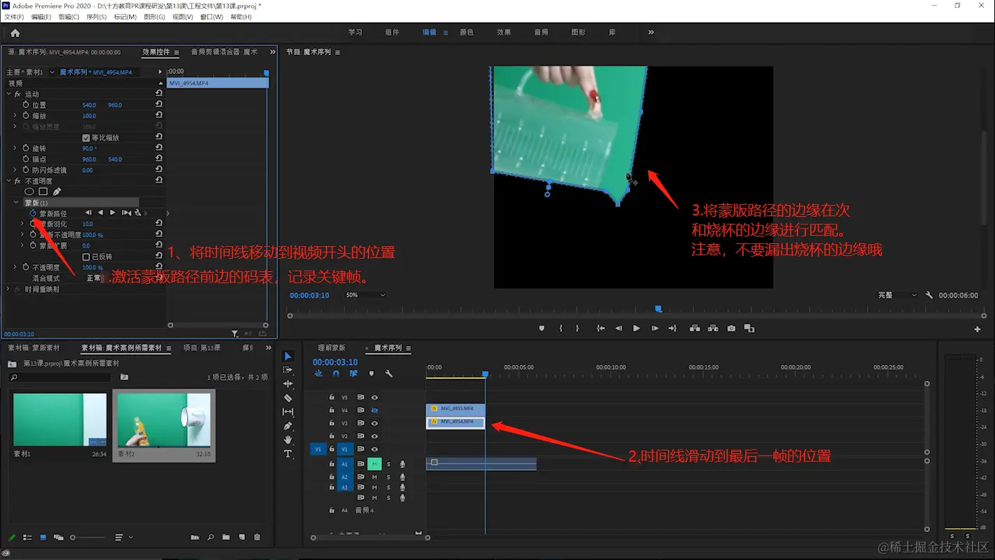 - 通过蒙版工具制作魔术视频。