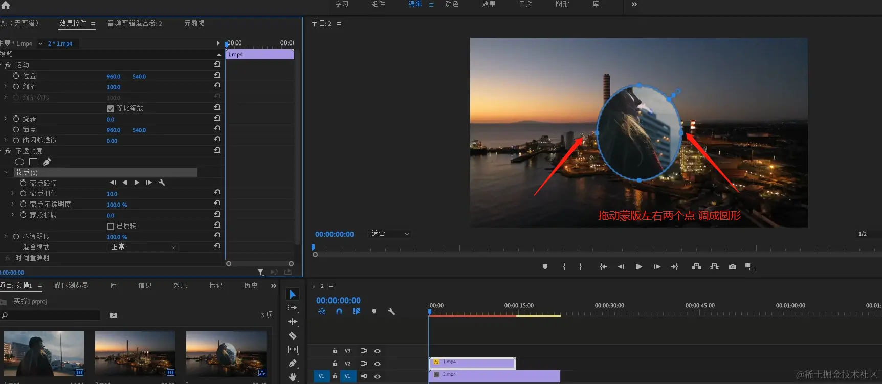 - 拖动蒙版上左右两个点可以把蒙版调整成一个圆形。