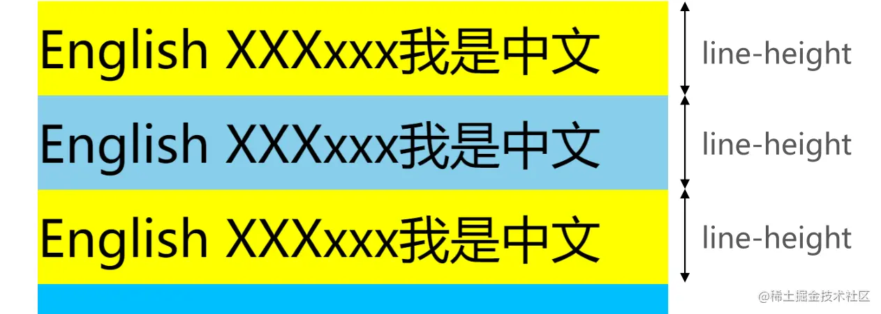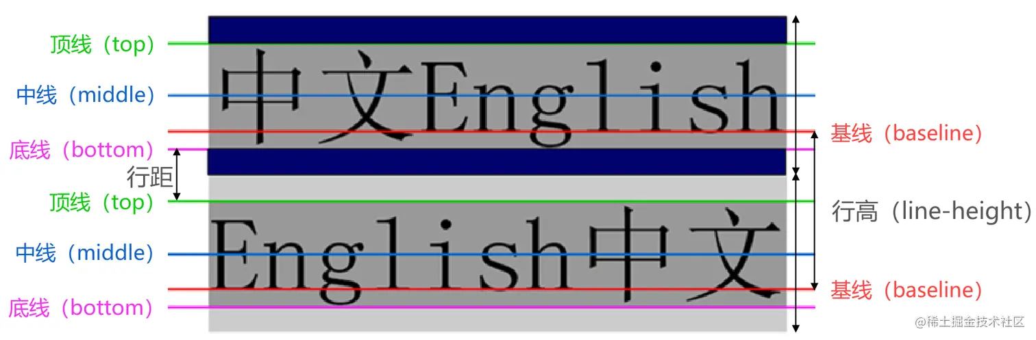 行高的严格定义是:两行文字基线(baseline)之间的间距