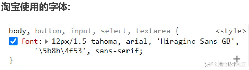 淘宝单独给小于 body 的标签设置字体的原因是怕有些浏览器单独给那些标签设置了字体,所以设置一下把它覆盖。