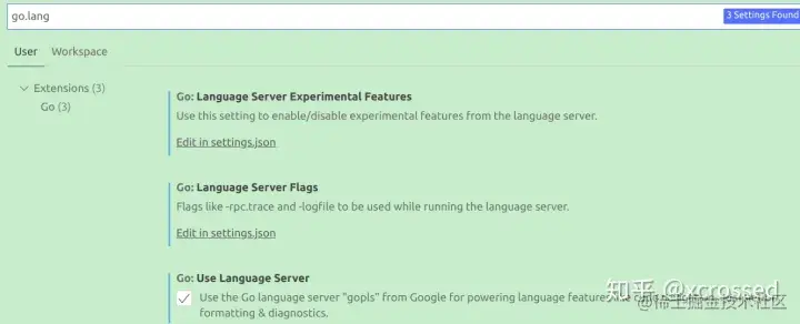 如果你现在使用了go mod模式,就不用纠结配置几个gopath的问题,只配置一个就好了。vscode的go mod支持需要启用language server按ctrl+, (注意是ctrl + 英文状态的逗号)调出配置界面,输入go.lang