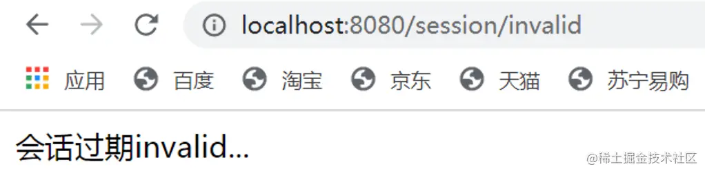 这时候如果我们把当前窗口页面关闭,经过60秒后,会话就会过期,等再次访问/user/hello接口,就可以看到如下效果,即跳转到了我们指定的会话过期界面。