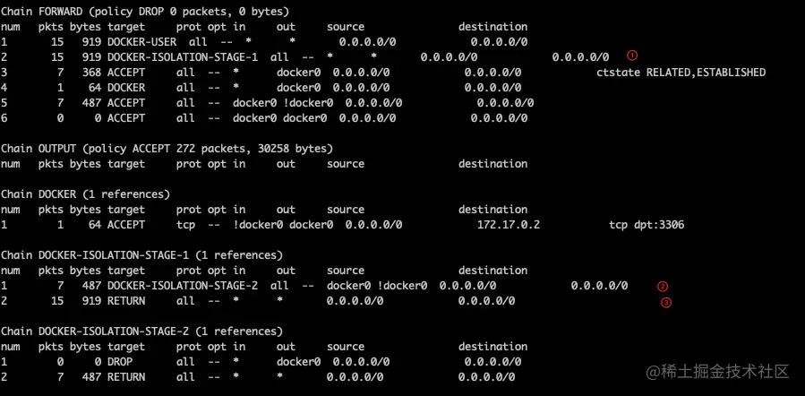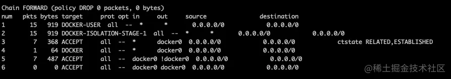 第二条链会包导入DOCKER-ISOLATION-STAGE-1链进行规则计算