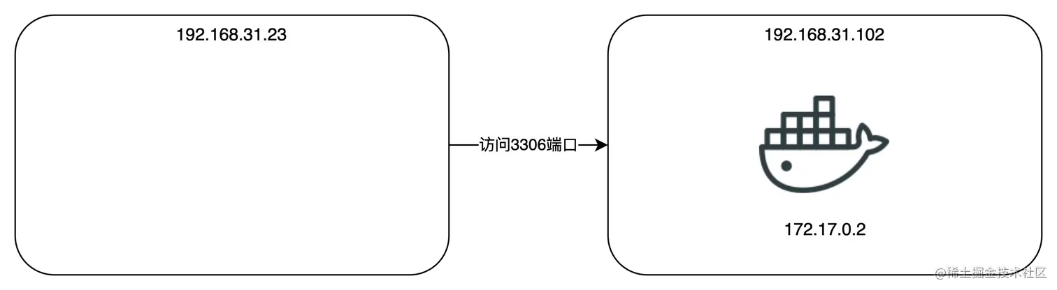 比如,我们在docker 中启动一个mysql,暴露端口是3306。 docker宿主机所在ip: 192.168.31.102。docker 服务启动的虚拟网段:172.17.0.1/16 , 启动的mysql在该虚拟网络的ip是: 172.17.0.2