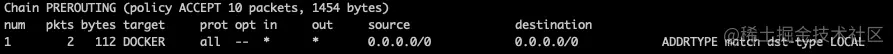 该链中的规则会被命中,同时将数据包导向nat表的DOCKER 链