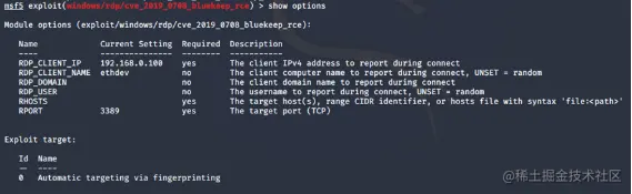 ol,RDP)的一个高危漏洞 CVE- 2019-0708,无需身份验证且无需用户交互,可以被蠕虫类攻击利用。该漏洞是一个释放后使用(Use After Free)漏洞,当 RDP 连接建立时,RDP 服务端默认创建 MS_T120 静态虚拟信道,该信道对象会 被绑定到 0x1F 信道号中。此时 RDP 客户端若请求绑定名称为 MS_T120 的信道到指定信道号,那么 MS_T120 信道对象就绑定在两个不同的信道号下,得到两个独立的引用。这样当客户端要求释放 MS_ T120 信道时,将会删除引用,释放信道对象。但是在关闭 RDP 连接时也会释放 0x1F 的 MS_T120 信 道对象,由于该对象空间已经释放过,再次引用就会触发 UAF漏洞。9 月 7 日 Metasploit 团队公开发布了该漏洞的利用模块 cve_2019_0708_bluekeep_rce.rb,该模块以 64 位版本的 Windows 7 和 Windows Server 2008 R2 为目标,根据下图 options 的信息,攻击者需要提 供设置 RHOSTS、RPORT、target,可用于针对性的攻击。目前为止,我们的设备检测到的对该漏洞的 告警数据已达到 56827 次。