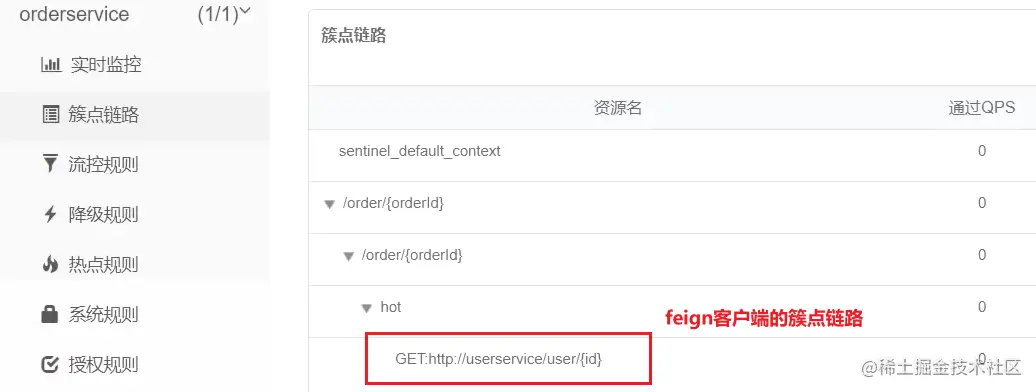 1.4.3访问order-service的任意端点 触发Sentinel监控