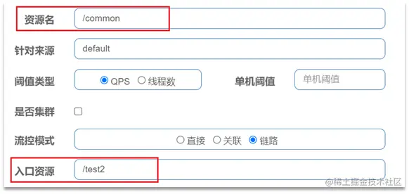 链路模式:只针对从指定链路访问到本资源的请求做统计 判断是否超过阈值