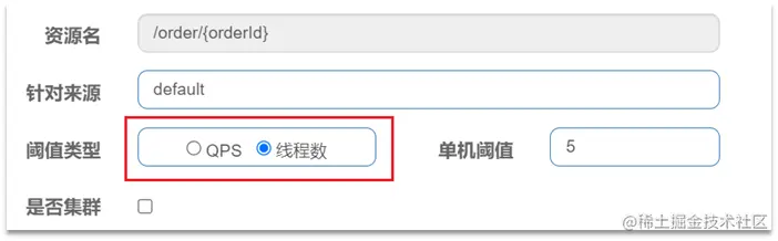 点击资源/order/{orderId}后面的流控按钮 可以弹出表单 表单中可以填写限流规则 具体如下: