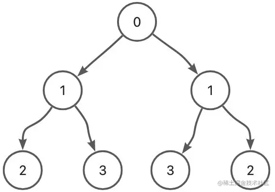 - 每个节点上的左右子节点同样的和另外对称一个节点满足条件1