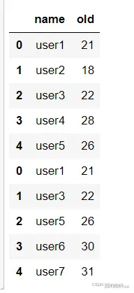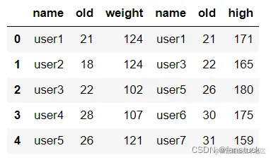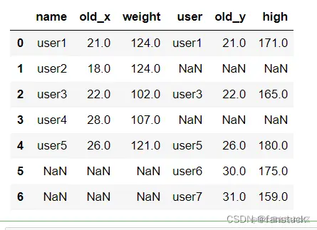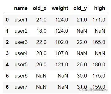 如果两个DataFrame对象都有“old”,则结果中就会出现“old_x”和"old_y“