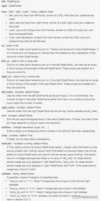 - on:用于连接的列名。该列名就像连接的两张表中共同的特征。类似按键合并多表。如果未制定,且其他连接键也没用制定,则以left和right列名的交集为连接键,也就是inner连接。