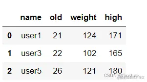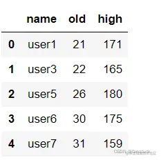 data = {'name': ['user1', 'user3', 'user5', 'user6', 'user7'],