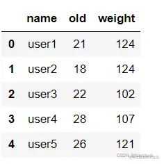 data = {'name': ['user1', 'user2', 'user3', 'user4', 'user5'],