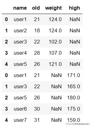 - sort:默认为True,将合并的数据进行排序。在大多数情况下设置为False可以提高性能