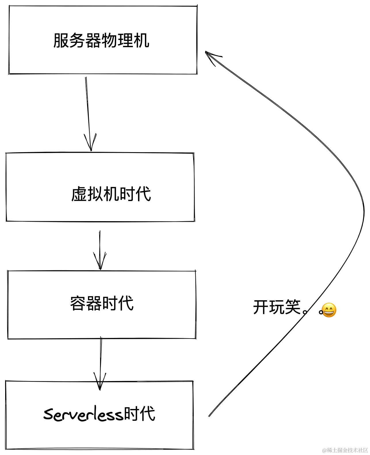 这篇文章以问题引入的形式带大家了解为什么云服务会出现,为什么Serverless会出现,通过这个演进的过程我们可以总结一下,那就是不断让服务器更加可靠,不断解放开发人员的运维工作,让开发人员投入到业务开发中来,出现问题,解决问题,生活也一样,无需抱怨,出现问题,解决问题。