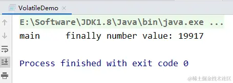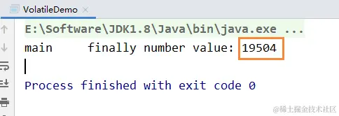 最终结果我们会发现,number输出的值并没有20000,而且是每次运行的结果都不一致的,这说明了volatile修饰的变量不保证原子性