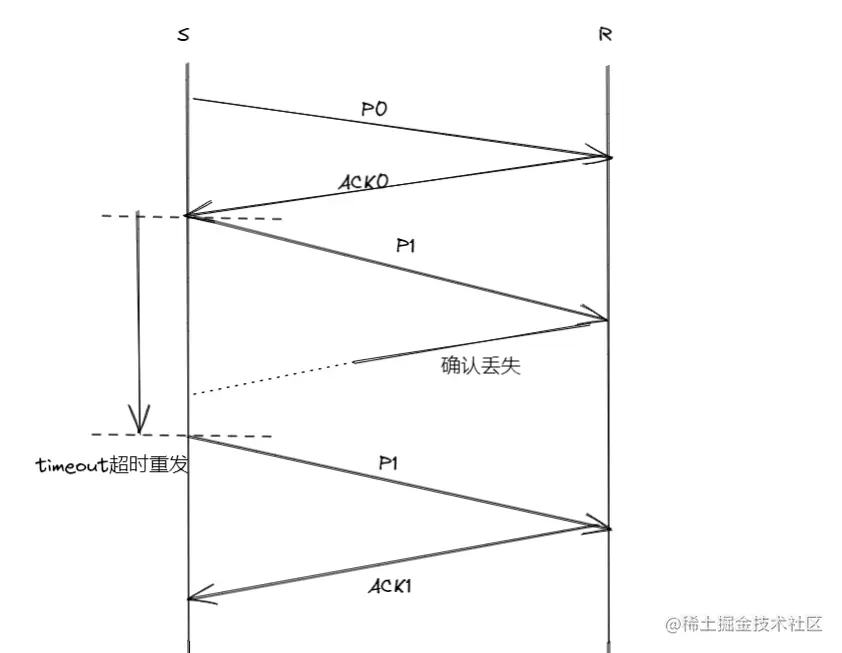 在前面的讨论中我们主要针对比特差错进行了学习,但在数据传输时,除了数据可能会出差错外,丢包也是经常会出现的问题(丢包包括丢数据或丢确认信息),那么针对丢包,我们又该如何解决呢?解决步骤大概分为两步,第一步就是如何检验丢包,第二步就是检查出丢包后我们该做些什么。