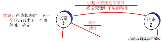 我们知道,一个可靠的数据传输协议可以使数据不受损,不丢失,不乱序。现在我们将一步步的研究rdt协议,先从最简单的情况考虑起,一步步构造一个完美、可靠的数据传输协议。在正式开始之前,我们要先知道:底层的可靠性决定了rdt协议实体的复杂度。什么意思呢?还是拿IP协议举例,如果IP自己就可以实现可靠的数据传输,那我运输层只需要做一个多路复用就可以了,此时的rdt协议便非常简单。所以我们先假设IP协议是一个完美无缺的可靠性数据传输协议,再一层层放开这个假设,最终使IP协议变为一个不可靠的(即现在的IP协议的样子),在此过程中,我们的rdt协议也将一点点复杂起来。此外,我们使用有限状态机(FSM) 来描述发送方和接收方的状态。