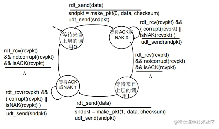 rdt2.0(经有比特差错信道的可靠数据传输)