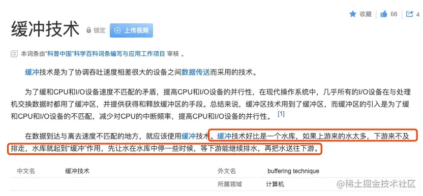 在百度百科中可以看到对缓冲技术有这样一种说明,如下图: