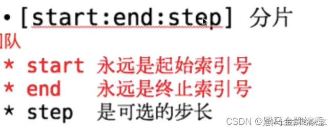 格式:序列名[开始位置的下标:结束位置的下标:步长]