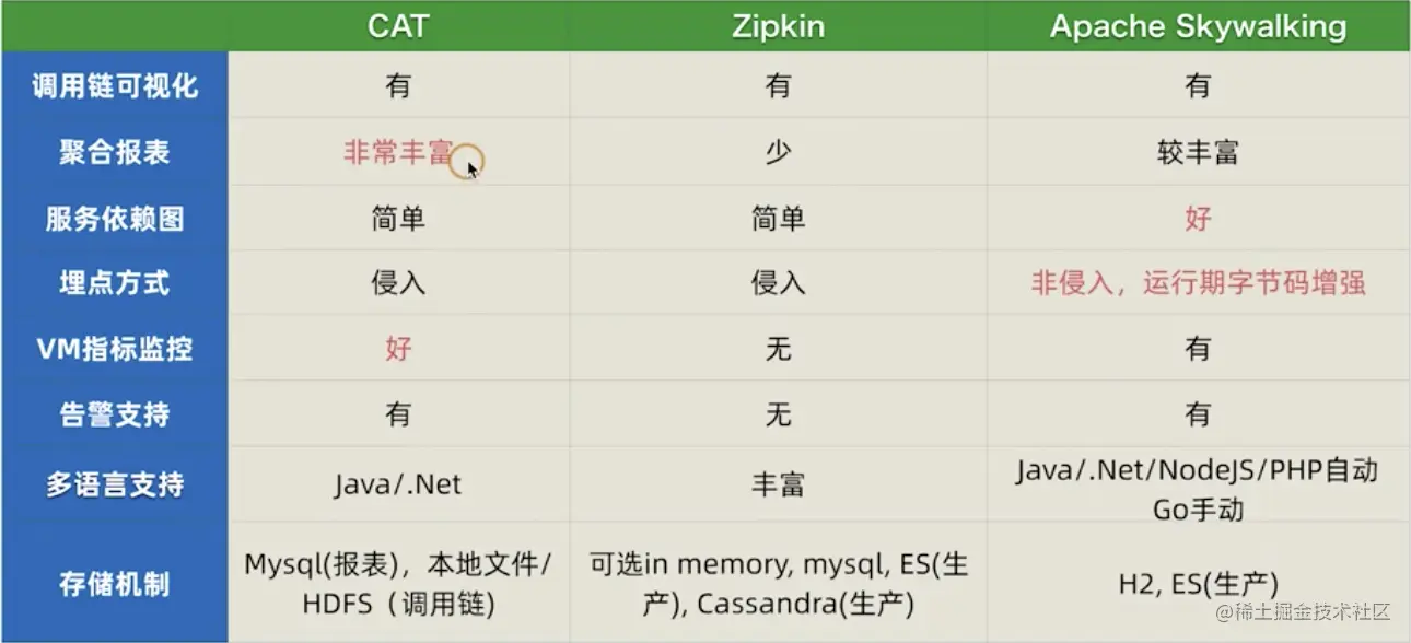 列出了3中工具:CAT,Zipkin,Skywalking