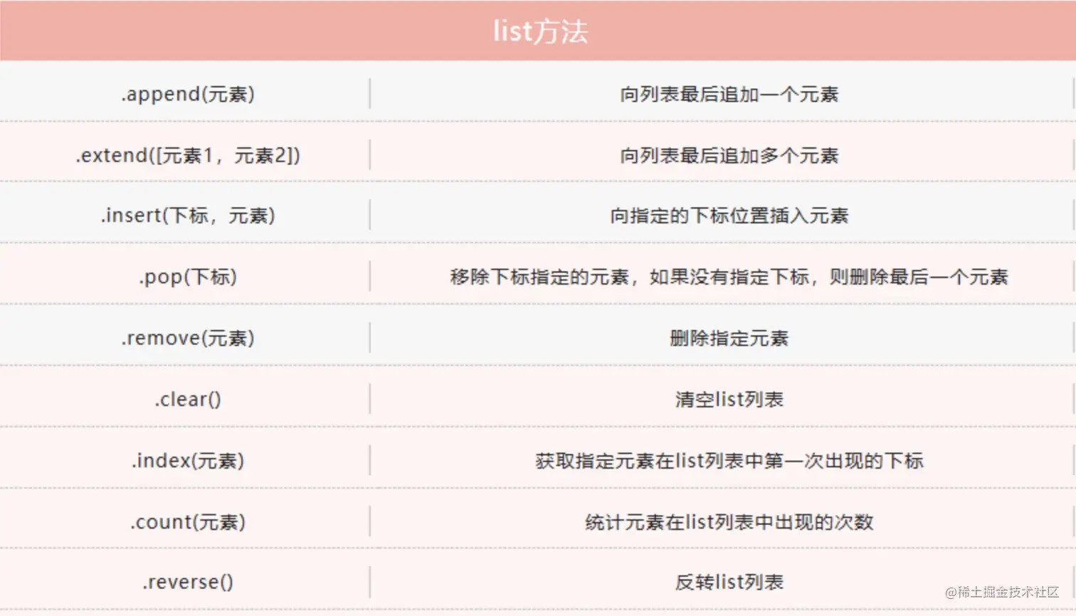 - 获取多个值:列表[起始位置:结束位置:步长],起始位置和结束位置可以省略不写;如果开始位置不写,则会从第一个元素开始获取;如果结束位置不写,则会获取到最后一个元素;如果都不写,则为列表的复制