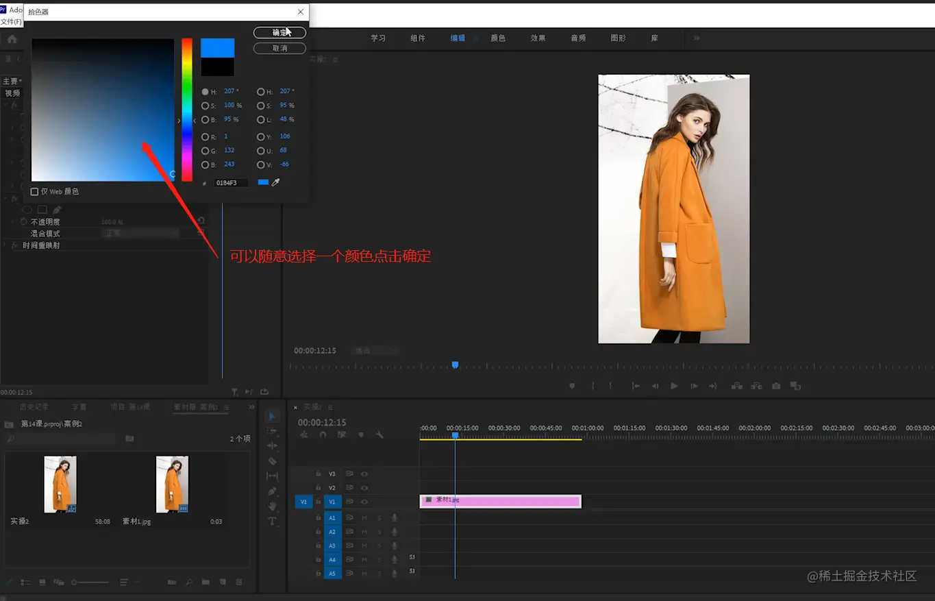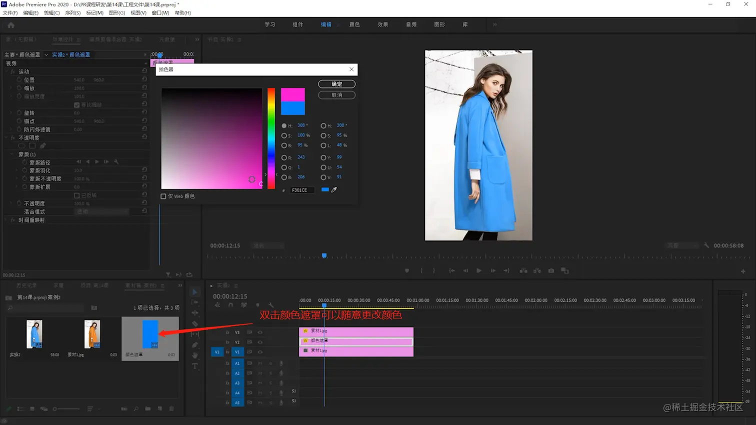 - 在项目面板双击颜色遮罩可以随意更改颜色