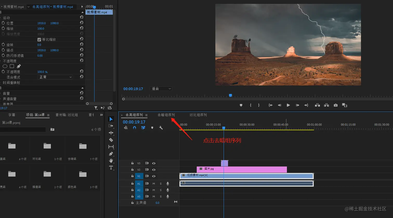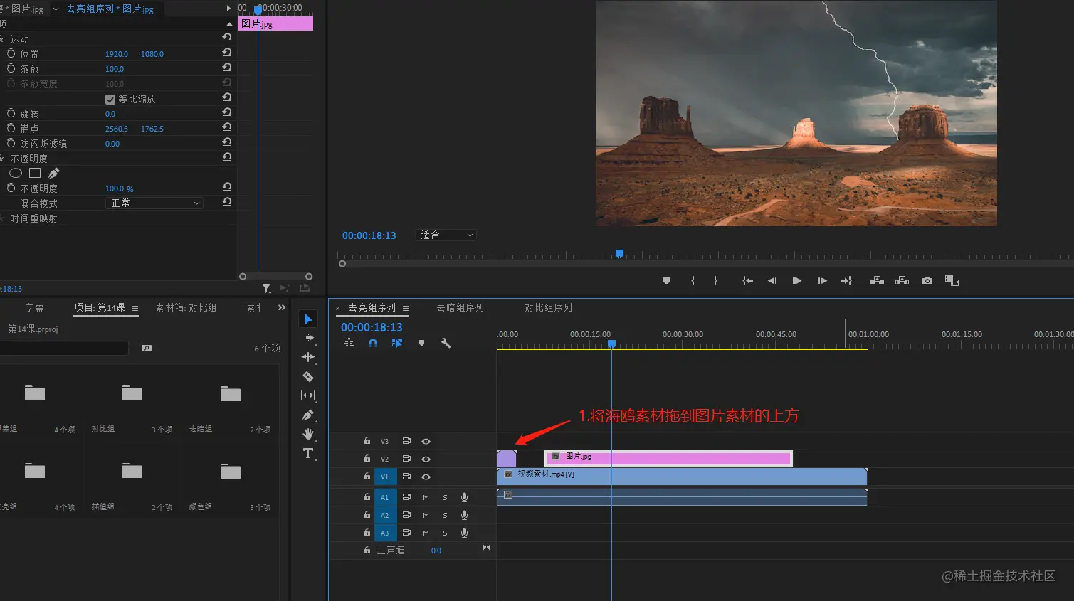 注意:可以通过调整不透明度进行画面叠加的过渡
