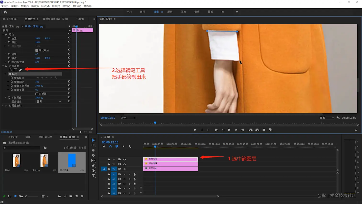 - 选中复制出来的图层 点击不透明度下的钢笔工具,将手部绘制出来。