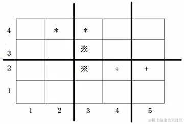 上图中用符号*、※、+标出了 对会交头接耳的学生的位置,图中 条粗线的位置表示通道,图示的通道划分方案是唯一的最佳方案。