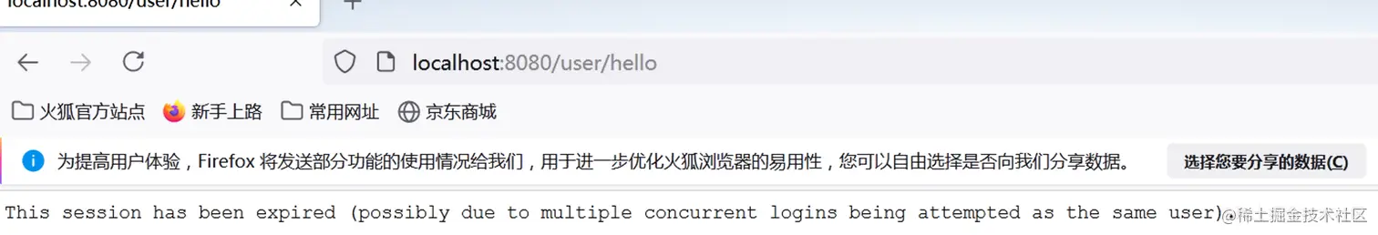 等我们在 Firefox 上再次访问 /user/hello 接口时,此时会看到如下提示: