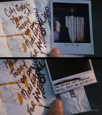什么意思呢?我们可以用影片中的重要道具——莱尼的笔记来进行类比。