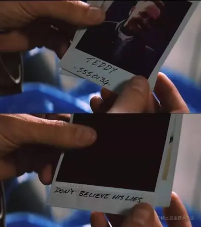 有一个情节是这样的,莱尼在制服了达德之后拍下照片,随后根据在自己身上摸索出的纸条上面的内容,重新梳理了下一步目标并记录在照片上。