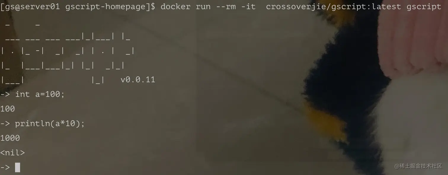docker run --rm -it crossoverjie/gscript:latest gscript