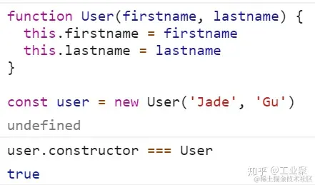 如上,我们通过 new 去创建 user 对象,可以通过 user.consturctor 访问到它的构造函数。