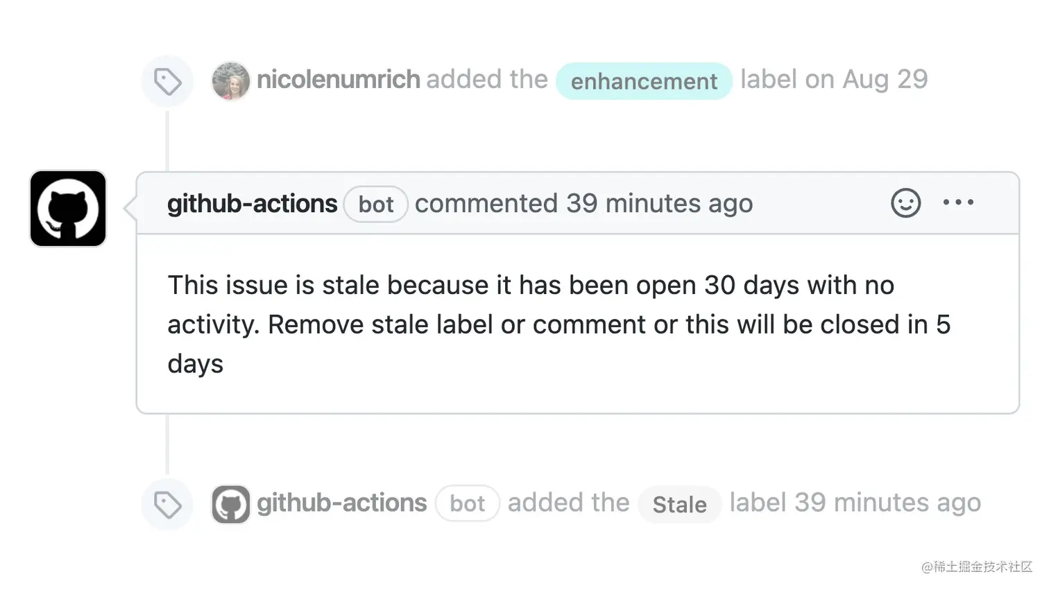 官方最新发布的 GitHub Action 可协助开源项目作者 / 维护者自动清理久未处理的 issue 和 PR,以节省处理“过期” issue 和 PR 的时间。详情可查阅项目仓:github.com/actions/sta… 。