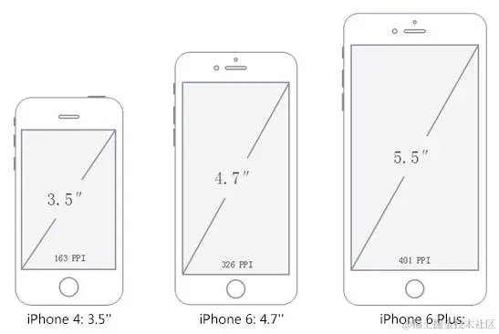 注意,像素密度密度值得不是每平方英寸中包含得像素点数量,而是屏幕水平或垂直得一条直线上每英寸包括得像素点数量,例如,iPhone6屏幕宽度为2.3英寸,高度为4.1英寸,其屏幕像素密度就等于750/2.3 = 326 或1334/4.1 = 326