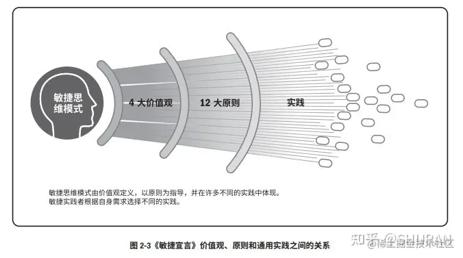 ④图2-3《敏捷宣言》价值观、原则和通用实践之间的关系