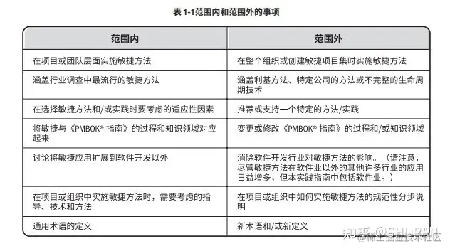①表1-1 范围内和范围外的事项
