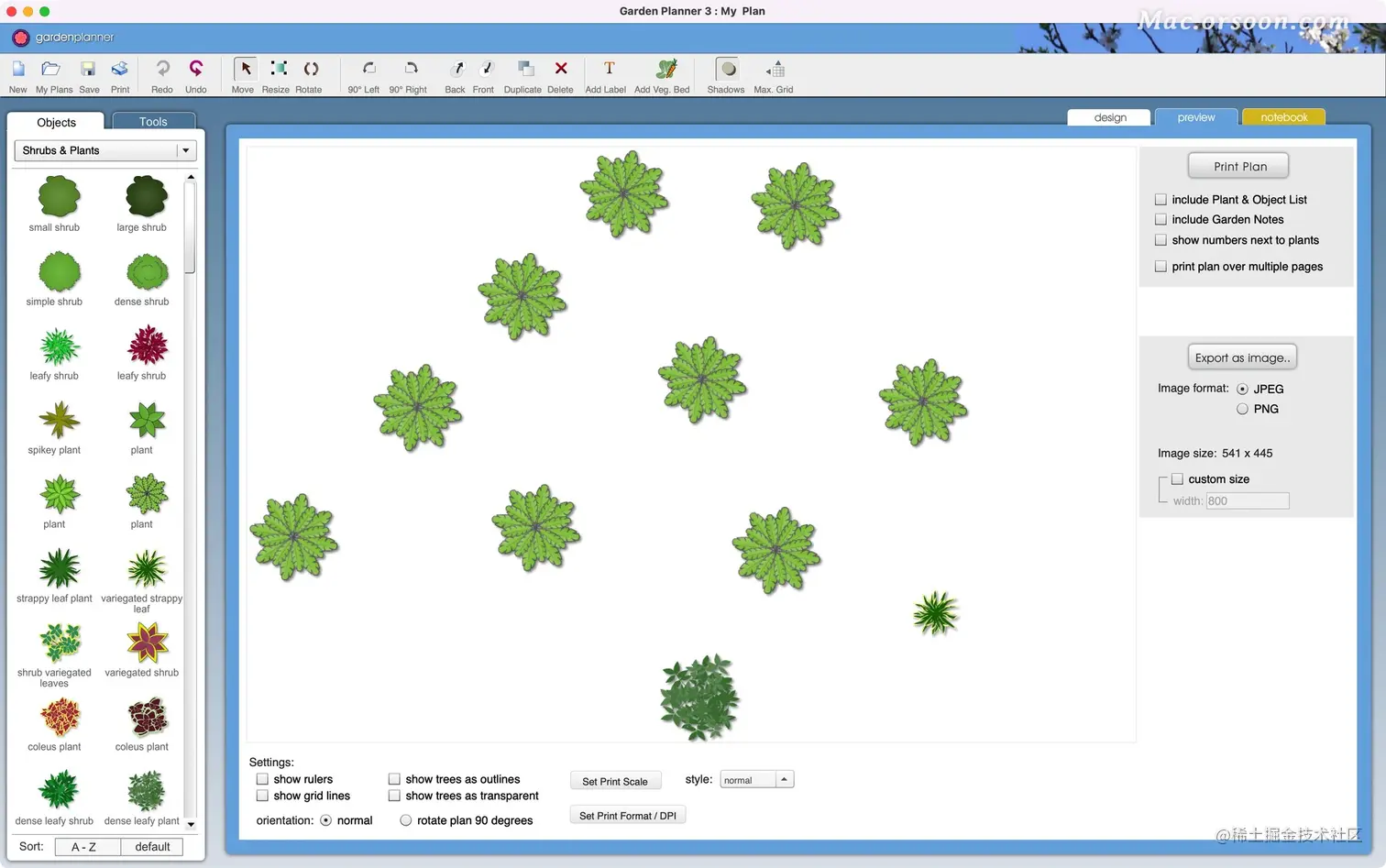 Garden Planner mac是一款园林设计工具,对于园林设计人员或者喜爱种植的用户来说,在种植之前我们需要进行样式、风格、种植效果等进行预先的设计与规划,从而能够帮助用户更好的获得效果,而今天为用户带来了这款garden planner,其为用户提供了丰富的植物、小径、池塘等素材,加上丰富的绘图工具,简单的操作方式,能够帮助用户轻松绘制出您的效果,非常适用与花园、种植园、药田等一系列园林设计。