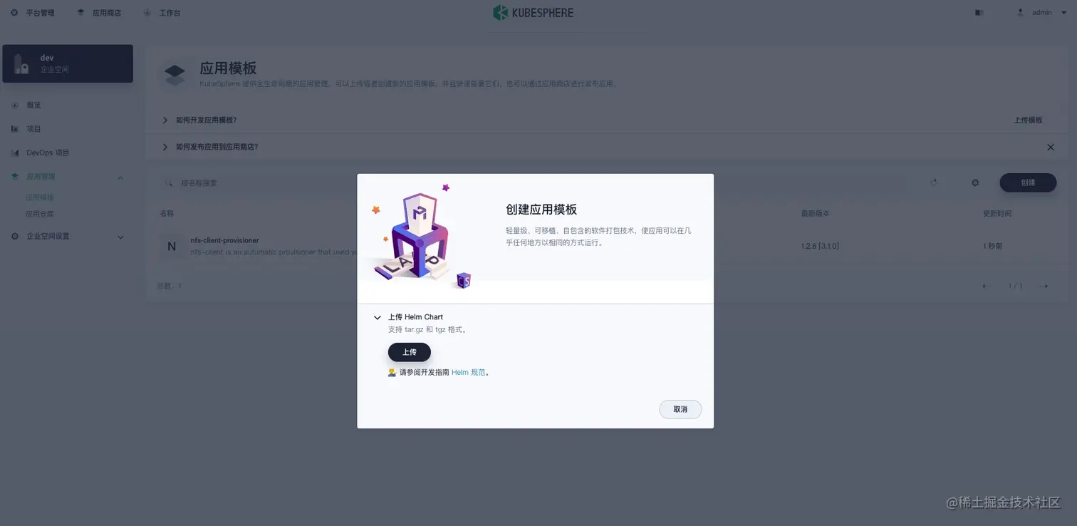| 应用发布 | 上传 Helm Chart | 一键发布到应用市场 |