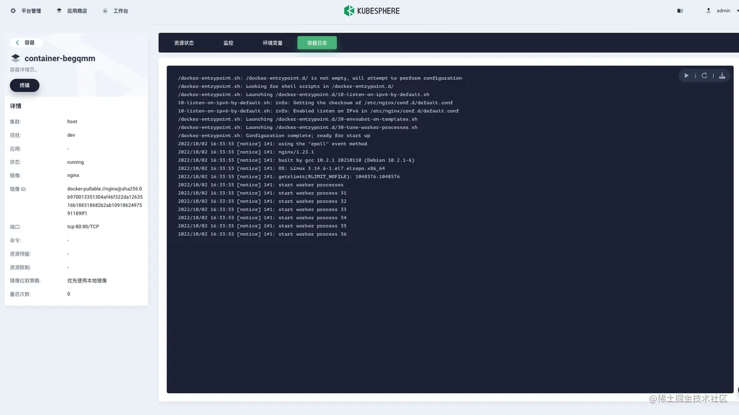 对于基本管理来说 KubeSphere 是原生 K8s 的一些管理,比如删除Pod、编辑YAML、配置环境、自定伸缩等,同样 Rainbond 展现的是应用级概念,比如:在K8s里没有关闭的概念,而在Rainbond里应用不用了直接关闭,想用了再启动,Rainbond做了很多应用级的概念转化,对于不动K8s的开发人员更加容易接受。
