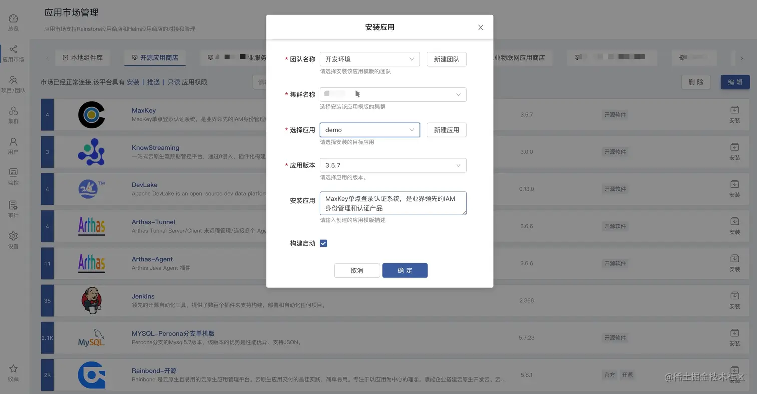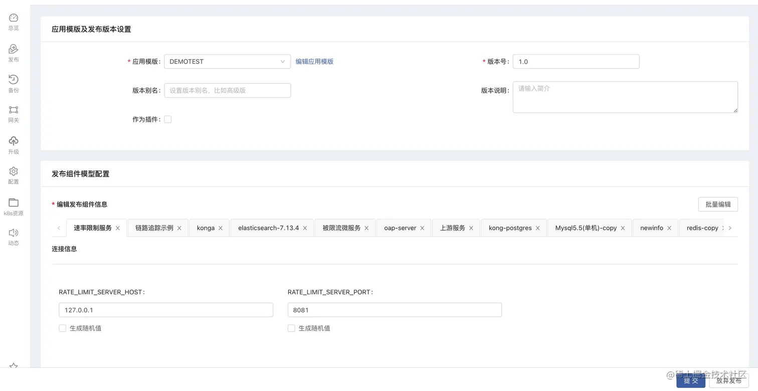 支持用户将已经部署好的应用一键发布至应用市场,无需编写复杂的YAML。可以一键发布应用模型内所有元数据,例如依赖关系、配置文件、存储信息等。