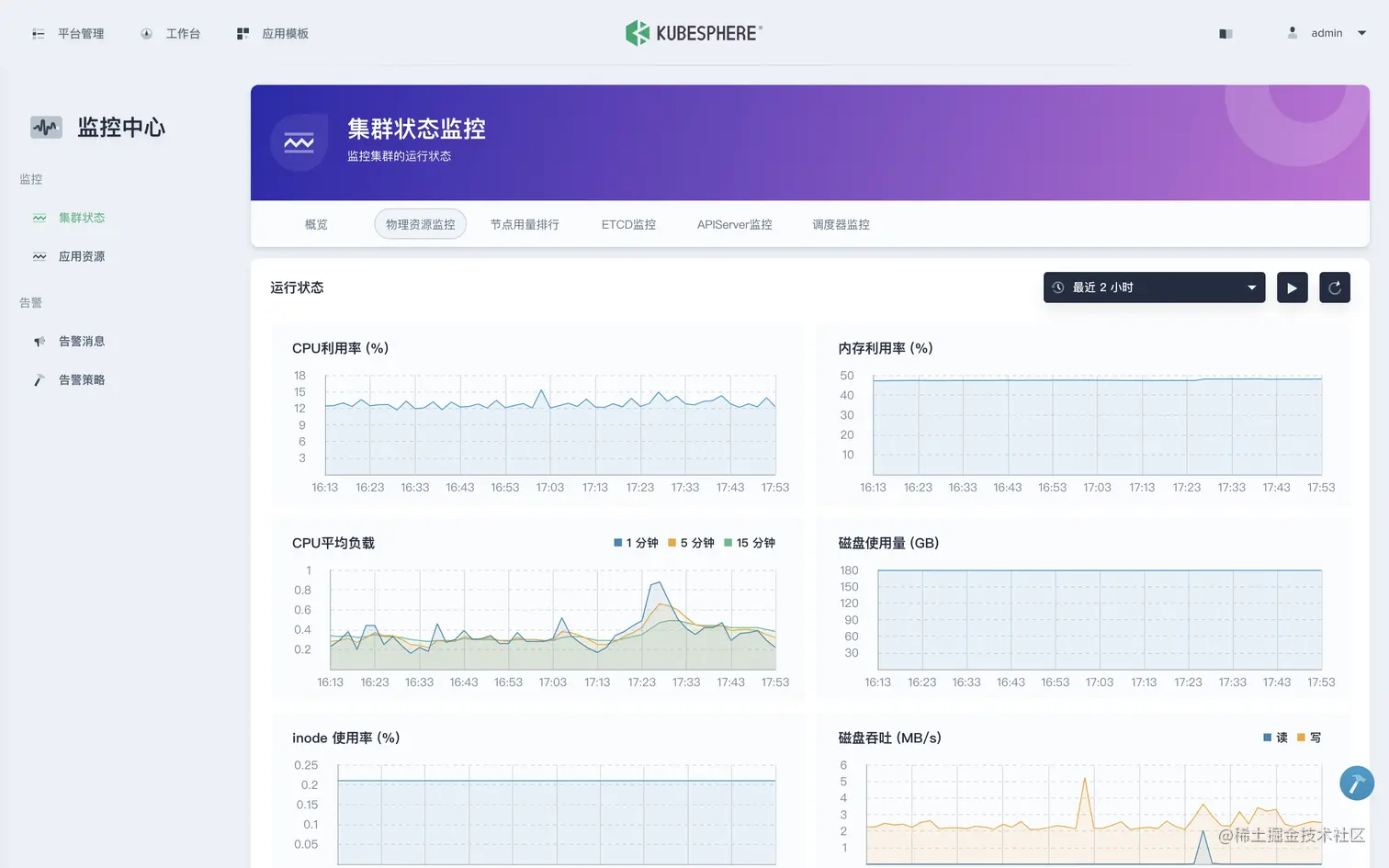 | 监控 | 支持工作负载级别的告警以及自定义监控图 | 支持组件级别的监控以及图表,告警可扩展 |