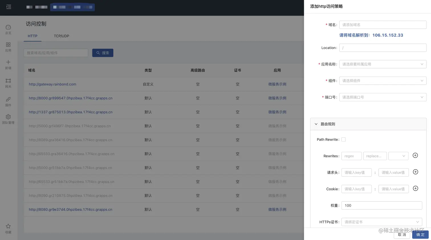 Rainbond采用统一的应用网关,支持配置HTTP路由规则和HTTPS证书