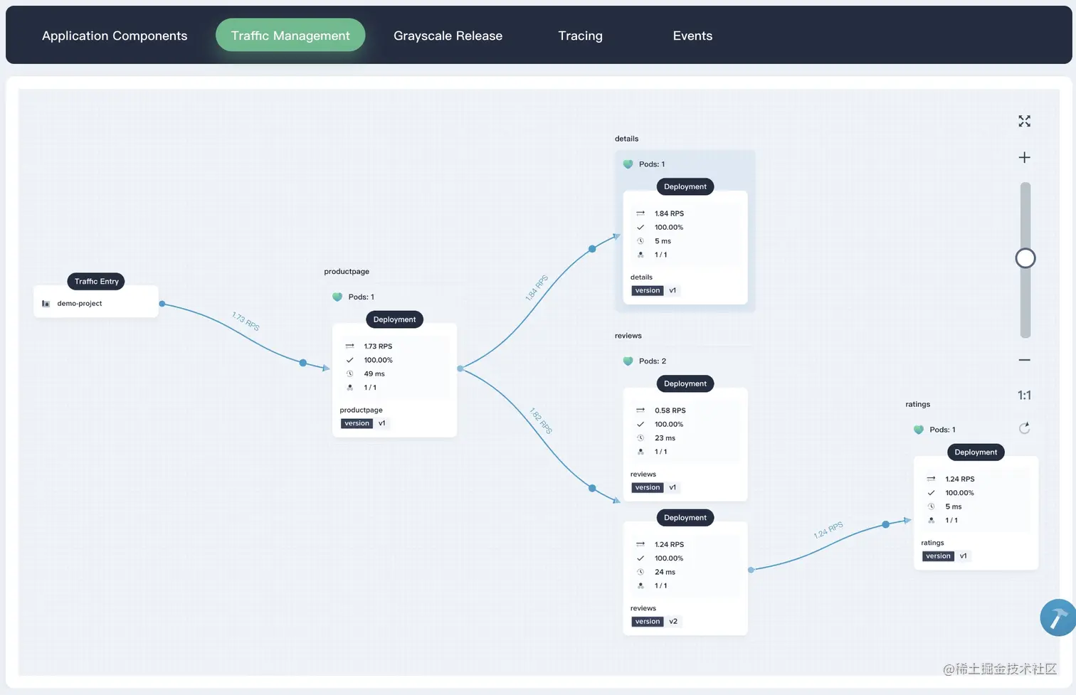 KubeSphere的微服务架构基于 Istio 实现,支持微服务的流量可视化管理。