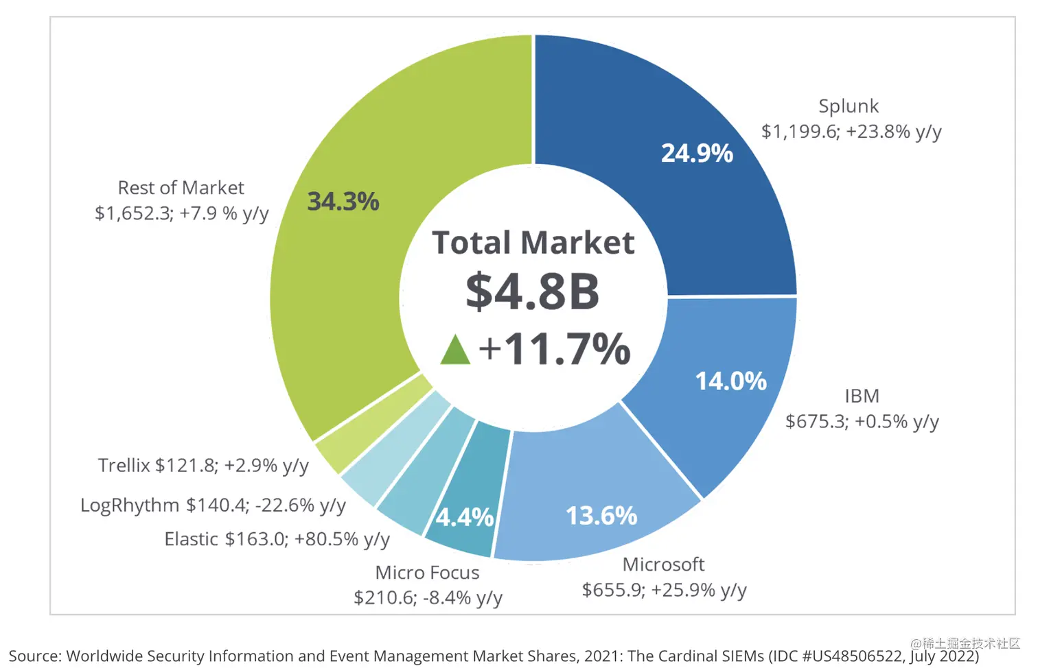 2021年全球 SIEM 收入市场份额